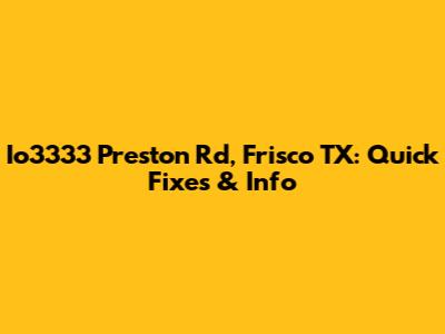 Io3333 Preston Rd, Frisco TX: Quick Fixes & Info