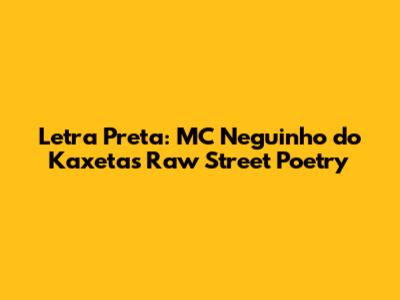 MC Neguinho do Kaxeta is a name synonymous with raw, unfiltered Brazilian street poetry. His track "Letra Preta" (Black Letter) is a powerful example of his lyrical prowess, delving into the harsh realities of life in the favelas with unflinching honesty. Understanding the significance of "Letra Preta" requires us to unpack its themes, dissect its lyrical content, and appreciate the cultural context from which it emerges. It's not just a song; it's a social commentary, a personal narrative, and a testament to the resilience of the human spirit in the face of adversity. Guys, when we dive into this track, prepare yourselves for a journey through the heart of the streets, a place where hope and despair often intertwine. This ain't your typical radio hit; this is real life, set to a beat.