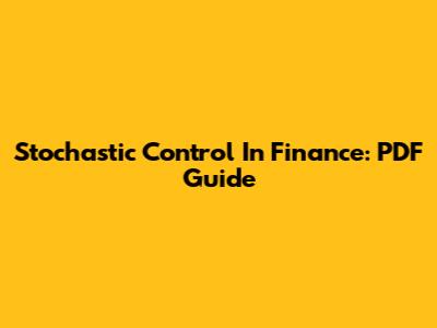 Stochastic Control In Finance: PDF Guide