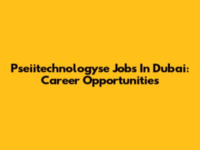 Pseiitechnologyse Jobs In Dubai: Career Opportunities